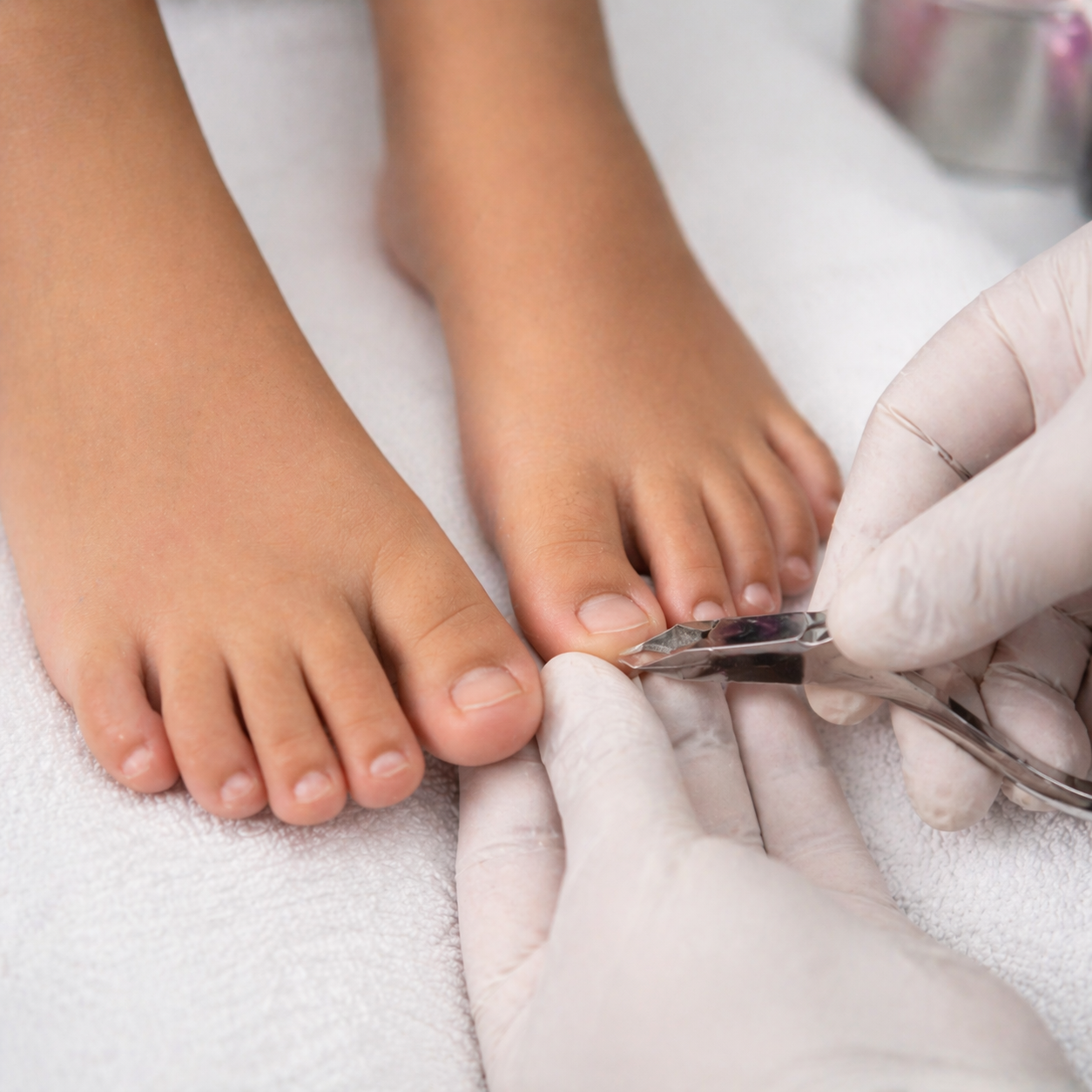 Foot care in childhood requires a delicate, preventative, and highly precise approach. The nails of babies and children are thinner, more flexible, and more firmly attached to the nail bed, so improper handling can lead to injury, infection, or ingrown toenails.
